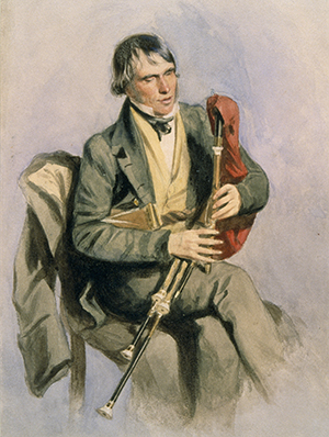 From Petrie’s collection it is evident that McMahon was not the only pauper to whom Gaelic scholars resorted in their pursuit of the words and airs to ancient Irish songs. A County Limerick woman named Mary Madden, described by Petrie as ‘a poor blind peasant woman from Limerick, now resident in Dublin’, was also the source of many ancient songs, while the antiquarian also patronised the legendary Galway piper Paddy Conneely, who rose to fame after the publication of an article by Petrie (with an accompanying sketch by Frederic William Burton) in the Irish Penny Journal on 3 October 1840. McMahon and Madden are significant in being the sources of a considerable amount of folkloric material provided to the leading Gaelic scholars in nineteenth-century Ireland. Furthermore, they constituted personified examples of the traditional popular associations between wandering beggars and storytelling. The examples of McMahon and Madden support the conclusions of George Zimmerman, who has analysed the recording of this tradition by the proto-folklorists of the early to mid-nineteenth century. Zimmerman quotes antiquarian John Windele’s account of encountering such individuals in west Cork in the 1820s:
