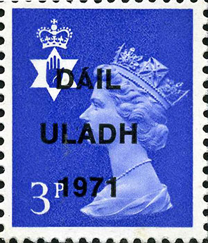 Above: A sample of the overprinted ‘DÁIL ULADH 1971’ stamp that appeared in September 1971, referring to a proposed alternative Ulster assembly to replace the unionist-dominated Northern Ireland parliament.