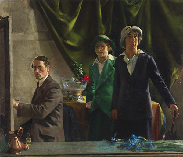 Above: Self-portrait of Patrick Tuohy with two lady friends. In a club meeting in February 1926 Tuohy defended O’Casey’s The Plough and the Stars against O’Flaherty’s criticism. (NGI)