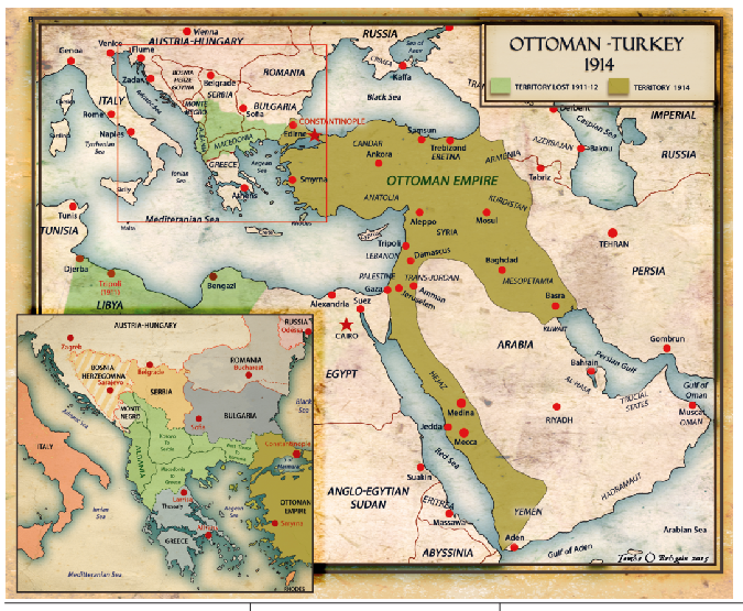 The Young Turks were ousted from the government in May 1912. After coming back to power in January 1913, following Ottoman Turkey’s defeat in the First Balkan War in November 1912, they were determined to reform the army and especially the officer class. They first approached the British, who refused to help the reform movement. Only then did they approach the Germans, who agreed, but only half-heartedly, because they assumed (wrongly) that the French were about to accept a similar approach.