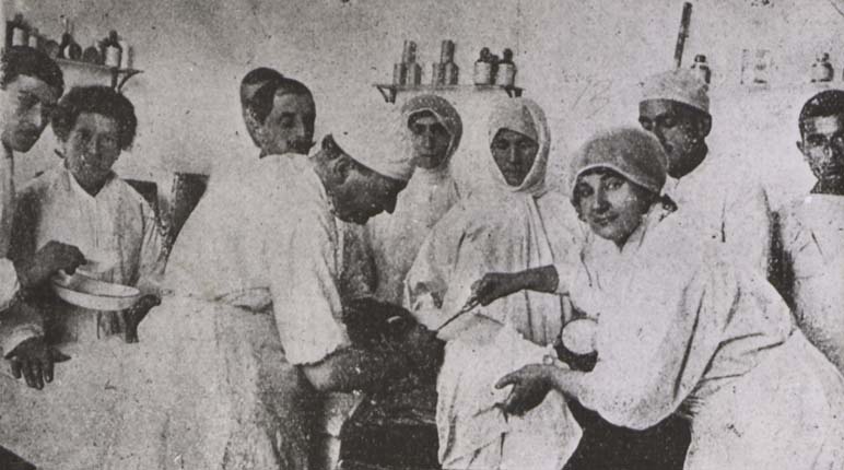 Surgery in a Turkish military hospital behind the lines. (Turkish general staff, History of War Dept.)