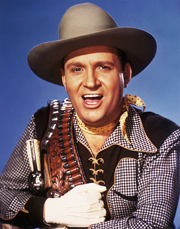 In August 1939, amidst fear of war and calls for air warden volunteers, the ‘Singing Cowboy’, Gene Autry, visited Europe for the first time on a promotional tour of cinemas in Ireland and England. During the 1930s, with classic hits such as Back in the Saddle Again and South of the Border, the country music legend amassed a level of celebrity only to be surpassed by Elvis Presley and the Beatles in later decades. Autry received at least 40,000 fan letters a year, earned at least £60,000 annually and was voted by fans as their ‘favourite cowboy’ for several years in the 1930s. His later No. 1 hits of Christmas songs such as Frosty the Snowman and Rudolph the Red-Nosed Reindeer are remembered as the definitive recordings. Autry starred in 93 films, mainly ‘horse operas’, in which he played himself as a heroic guitar-playing cowboy. The films were vehicles for his songs and immensely popular escapism for children, who adored the handsome, well-dressed Autry and his prized horse, ‘Champion’.
