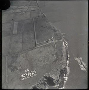 Above: ‘Éire sign 44’, Kilcreadaun Point, Co. Clare. In 1943, 83 of these signs (the fada was generally not included) were constructed around the Irish coast, and maps showing the numbered signs were given to Allied aircrews crossing the Atlantic. Axis aircrews flying near Irish territory would see the signs, but without the numbered key to the locations they were of little use as navigation waypoints. (Military Archives)