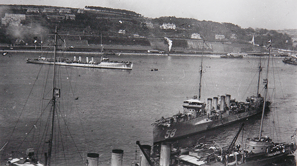 On 4 May 1917 a flotilla of unusual vessels appeared off the Daunt lightship at the approaches to Cork Harbour. These were destroyers of the United States Navy; with their low profile and four stubby funnels, they were quite different in appearance to the ships of the British Navy, so familiar in Cork Harbour after almost three years of war.