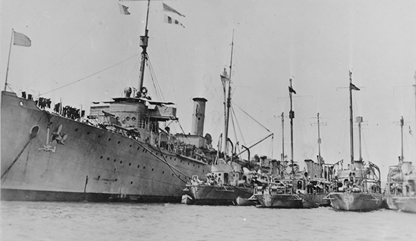 Above: The USS Melville—one of two US depot ships—with destroyers alongside. They were moored west of Haulbowline Island in Cork Harbour.