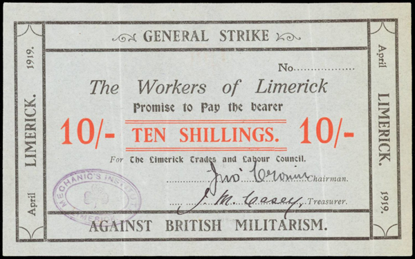 Above: A Limerick Soviet money voucher. ‘They [Limerick workers] declared proudly their soviet status, organised civil life independent of the bourgeois institutions and demanded that Irish Labour turn their struggle into a national general strike.’