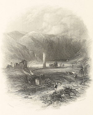 Visiting Glendalough (Co. Wicklow) on 3 September 1829, Wordsworth witnessed the influence of Catholicism. With its round tower and ‘seven churches’, Glendalough is steeped in local traditions relating to St Kevin. Thomas Moore popularised the place in one of his Irish Melodies, telling the story of St Kevin’s Bed, a precipitous spot from which the saint was said to have flung the amorous Kathleen into the lake. In Glendalough, Wordsworth saw an Irish woman who was going to dip her child in St Kevin’s Pool ‘to cure its lameness’. The ‘tenderness’, he wrote, with which the Catholic woman ‘spoke of the Child and its sufferings and the sad pleasure with which she detailed the progress it had made towards recovery would have moved the most insensible’. The woman’s religion, however, precluded Wordsworth’s full sympathy. He asked: ‘What would one not give to see among protestants such devout reliance on the mercy of their Creator, so much resignation, so much piety—so much simplicity and singleness of mind, purged of the accompanying Superstitions?’